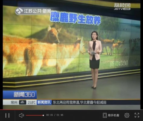 江苏卫视新闻新时空,江苏公共·新闻频道新闻空间站、通天下、新闻360,分别报道大丰30头麋鹿野放讯息。