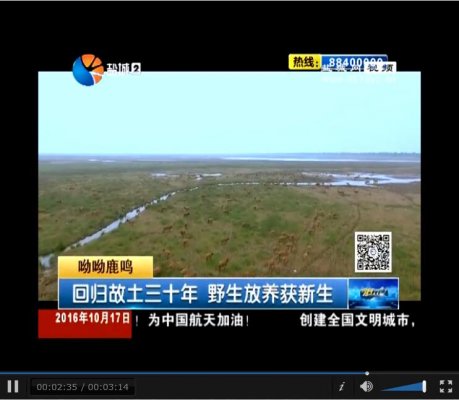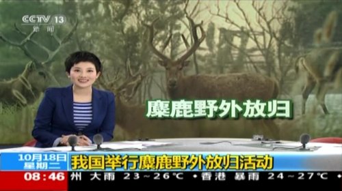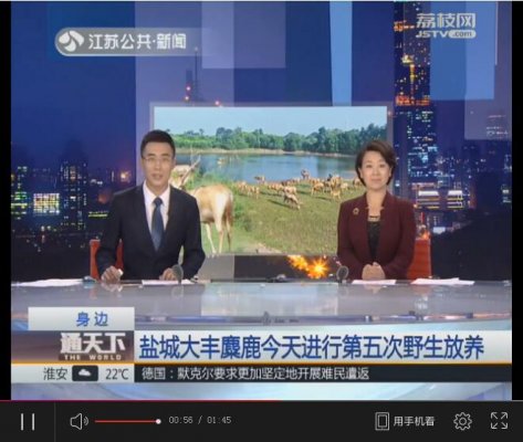 中央电视台13套新闻频道朝闻天下报道麋鹿野外放归活动在大丰举行。