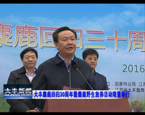 大丰电视台大丰新闻报道麋鹿野放仪式、保护管理工作座谈会。