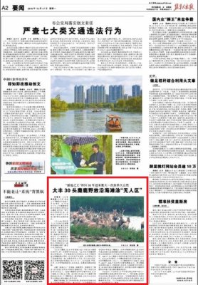10月17日,盐阜大众报报道“大丰30头麋鹿野放沿海滩涂'无人区'”。