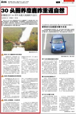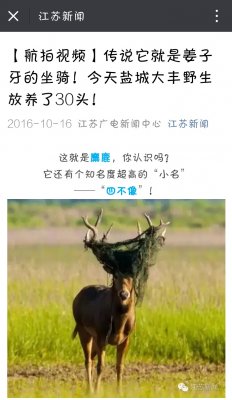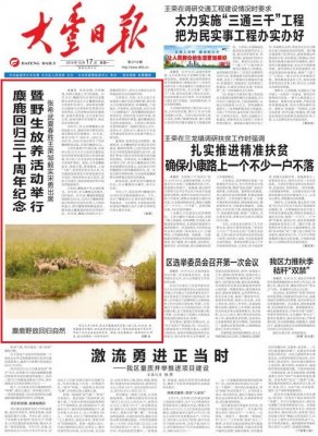 10月17日,盐城晚报报道“30头圈养麋鹿昨重返自然”。