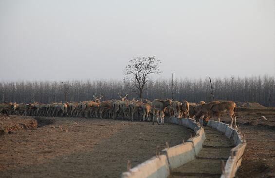 今天,大丰麋鹿国家级自然保护区麋鹿冬季补饲开始了。这也是入冬以来,麋鹿群最盼望的一天,能够吃上由保护区技术人员为他们精心搭配的“美味”。在机器的轰鸣声中,麋鹿成群结队跑向“露天餐厅”,在技术人员为他们精心设计的饲料槽旁边排好队,快乐地分享他们的美餐。