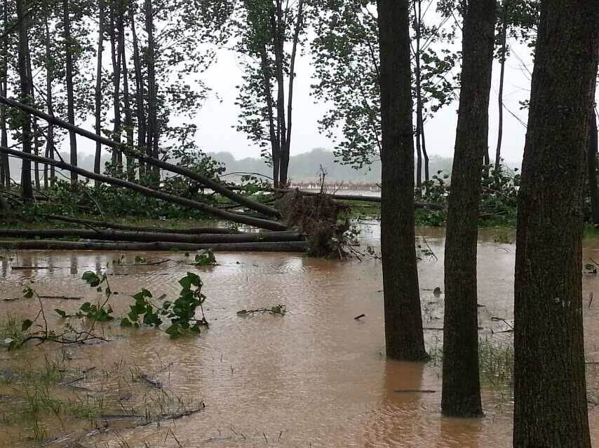 截止2015年7月12日12点,受台风“灿鸿”的影响,江苏省大丰麋鹿国家级自然保护区连续三天的阴雨、暴风雨天气,风力很大,致使保护区内尤其是麋鹿生活区内的树木被风刮倒数百棵,甚至好多大树被连根拔起。目前,保护区工作人员被分别派往各区域实地查看麋鹿及其栖息地的受灾情况。