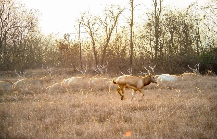 经过多年时间的跟踪观察和监测,麋鹿的野生行为不断恢复,它们在野外具有较强的识别能力和自然保护意识,连续3年在完全自然的情况下成功产仔,并全部成活。
