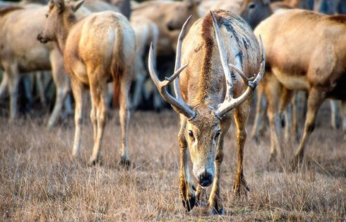 麋鹿,俗称“四不像”,本为中国特有。在中国,麋鹿具有吉祥和皇权不同凡响的象征,1865年被法国大卫神父发现,此后陆续运送到欧洲。我国野生的麋鹿早已灭绝,最后一群散养在北京南海子清朝皇家猎苑中。1900年八国联军疯狂劫掠,猎苑毁于战乱,麋鹿从此在中国绝迹。