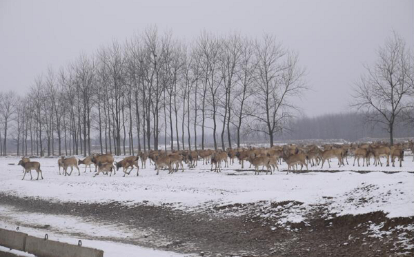 2016年1月21日,在整个保护区,麋鹿栖息地内白雪皑皑,一大早起来,保护区工作人员就集体奔赴麋鹿生活区,开始对麋鹿栖息地,围网周围进行全面巡查,确保麋鹿一切安全。