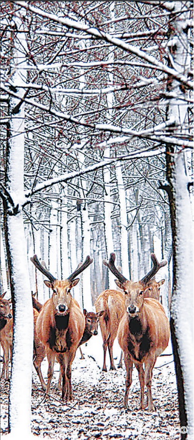 位于黄海之滨的江苏盐城,是麋鹿的故乡,建有江苏省大丰麋鹿国家级自然保护区。最近寒潮频袭,保护区正经历罕见寒冷天气。