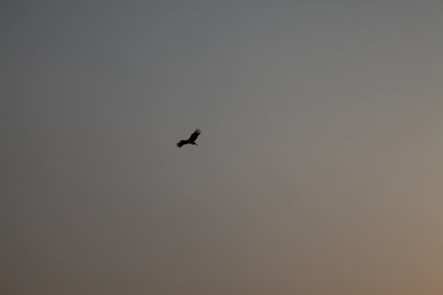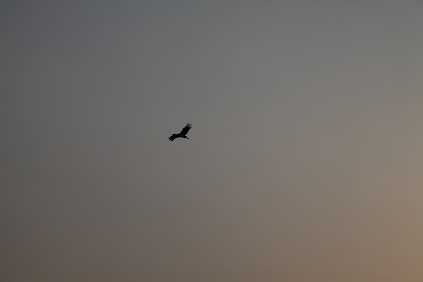 夕阳西下一只东方白鹳从天空划过,大家纷纷拿起手机捕捉这一稍纵即逝的瞬间。