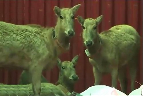 2月26日下午,大丰麋鹿保护区从散放的2800多头麋鹿中精心挑选出16头(5雄,11雌),带上GPS项圈后,搭乘三辆卡车,从大丰出发,经22小时的车程,到达东洞庭湖国家级自然保护区。随着圈养的围栏徐徐开启后,在湖南东洞庭湖国家级自然保护区放归野外。