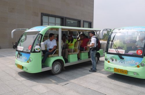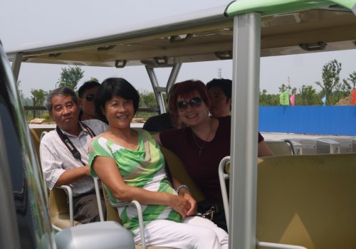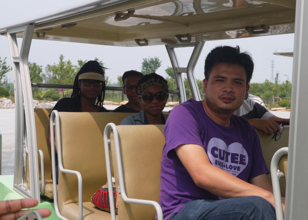 学生们在游客中心观看了《归来的麋鹿》英文版,通过视频认识了麋鹿及其发展历史,随后乘坐电瓶游览车从实地环境中了解麋鹿,了解湿地生态。
