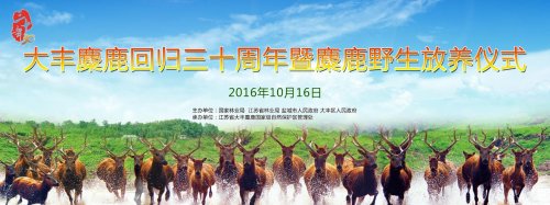 2016年10月16日上午8:30,大丰麋鹿回归三十周年暨野生放养仪式在麋鹿野生放养区隆重举行,国家林业局领导、江苏省林业局领导、盐城、大丰区委区政府领导以及相关方面研究专家,国内麋鹿保护机构和输出地代表等出席大会,江苏电视台新闻频道、中央电视台新闻频道、新华社、绿色时报、盐阜大众报、盐城晚报、大丰日报等媒体进行跟踪报道。