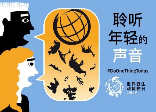2月28日,在联合国野生动植物日即将到来之际,联合国环境署、国际爱护动物基金会(IFAW)和大自然保护协会(TNC)联合发起“关爱保护野生动植物”的公益倡导活动,以“今日小小善举,换明日生生不息”。2017年3月3日是全球第四个“世界野生动植物日”,主题为“聆听年轻的声音”,旨在激励世界各地的年轻人团结在一起,解决当前野生动植物面临的主要威胁,如野生动物栖息地的改变、过度开发或非法贸易等。联合国世界野生动植物日呼吁青年人参与并赋权青年人。2017年世界野生动植物日赋予我们新的机遇,激励青年人解决野生动植物保护的问题。这也是让青年人参与其中,共建更美好明天的重要契机。