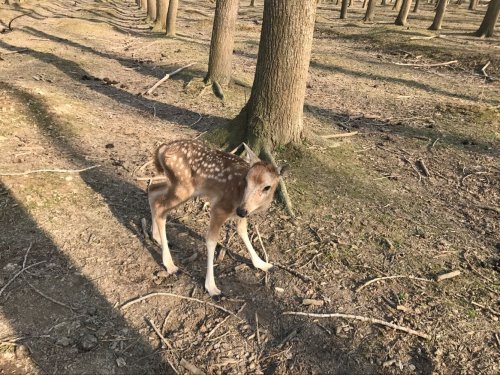 2017年3月6日下午,大丰麋鹿保护区的工作人员照常巡逻,意外在第一核心区的树林中发现落单的几头母鹿聚在一起,走进一看,发现一只微微站立的,身上带有白色斑点的小鹿在它们中间。科研人员认定,这是保护区今年新生的第一头小麋鹿。