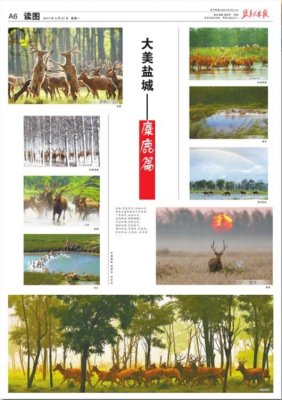 2017年3月27日,盐阜大众报A06版读图整版刊登《大美盐城——麋鹿篇》。展示了大丰麋鹿保护区30多年来的保护成果。