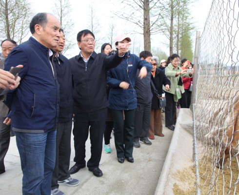 2017年4月11日,江苏省政协老同志一行116人来大丰麋鹿保护区考察,盐城市政协副主席、麋鹿保护区管理处主任孙大明陪同接待。