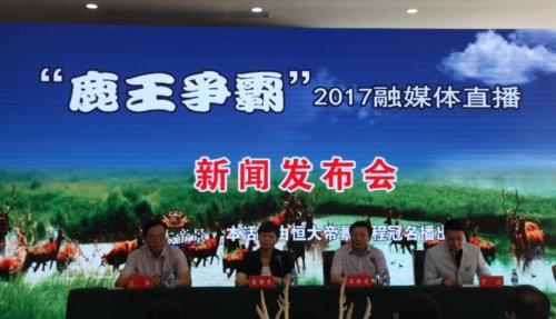 由江苏大丰麋鹿国家级自然保护区与盐城电视台合作举办的2017年鹿王争霸现场直播新闻发布会于6月12日在中华麋鹿园游客中心召开。盐城市大丰区政协主席袁国萍,盐城市大丰区委常委、宣传部长石根美,江苏大丰麋鹿国家级自然保护区管理处副主任沈华出席此次发布会。