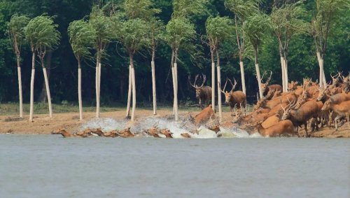 2017年6月18日上午9点整,江苏大丰麋鹿保护区中华麋鹿园上演了一场激情与爱情的厮杀战,600多头麋鹿在茫茫的湿地上争夺今年王位的宝座。