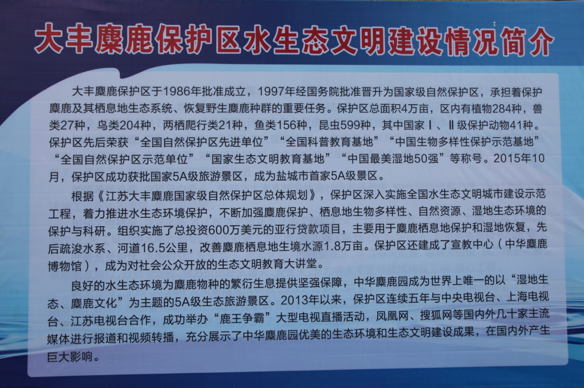 6月28日上午,全国水生态文明城市建设试点技术核查组来麋鹿保护区考察,麋鹿保护区管理处副主任沈华陪同。