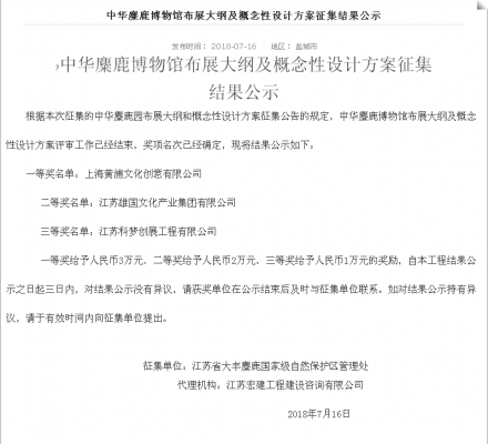 中华麋鹿博物馆布展大纲及概念性设计方案征集结果公示