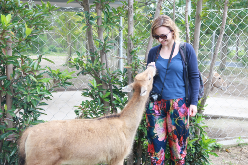 研修班一行首先来到中华麋鹿园游客中心,观看了纪录片《归来的麋鹿》,随后乘坐电瓶游览车进入麋鹿半散养区近距离接触麋鹿。一路上,保护区安全保卫处刘彬为大家耐心讲解了麋鹿的生活习性、分布范围、麋鹿文化等,大家都对麋鹿这一珍稀物种有了理性的认识并产生了浓厚的兴趣。在人工驯养区,外国友人们和小麋鹿亲密互动,大家都被小麋鹿们的热情可爱深深打动。最后,我们驱车来到保护区第三核心区,大家边走边聊,更加领略到野生麋鹿的风采和沿海滩涂湿地的别样风光。