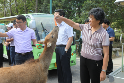 此次调研,陈主任一行进入麋鹿半散养区与麋鹿近距离接触,孙大明主席向陈主任详细介绍了麋鹿这一物种的生活习性、分布范围及鹿角价值。半散养区内除了麋鹿还有很多鸟类,如:白鹭、牛背鹭、野鸭、黑翅长脚鹬、苍鹭等,这些鸟与麋鹿和谐共生,陈主任由衷感叹保护区的生物多样性十分丰富。孙主席还介绍了保护区内水系改造情况和麋鹿补饲工作,这些是保护麋鹿的前提,只有解决了吃、喝才能更好地保护麋鹿。陈主任对保护区的生态保护工作给予高度评价,在做好麋鹿及其他野生动物保护工作的同时,合理进行旅游资源的开发,保护生态环境与创造经济价值并举,值得借鉴学习。