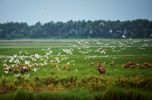 迄今,麋鹿种群数量已达4556头,其繁殖率、存活率、年递增率均居世界之首,占世界麋鹿总数60%,其中野外麋鹿数量并已达到905头,建立了三个“世界之最”,即世界面积最大的麋鹿保护区、世界最大的麋鹿野生种群及世界最大的麋鹿基因库。为人类拯救濒危物种提供了成功的范例,使我国野生动物保护事业进入了一个新的领域。