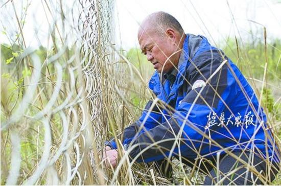 除了驯养麋鹿,老卢还有一绝,就是“围网”。为了防止麋鹿乱窜,保护区需要用网格将麋鹿围住,放在过去,这并不是一件轻松活儿。“为了开辟一条围网的路,我要用手去掰开周围的各种树枝,经常会被一些树枝刺到。”记者看到,老卢手掌上有个紫色的印记,他说,这大概是十多年前被刺槐刺伤的,一些刺断了一半在手掌里,有时候自己难拔,就依靠工友之间相互帮忙。