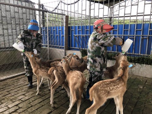经过了一个星期的精心护养,小麋鹿成功渡过了初乳关,已经基本适应了驯养条件下的生活,饲养员兢兢业业、精心呵护每一头“小家伙”,与他们建立亲密的“母子”关系,为接下来的驯化工作奠定了良好基础。