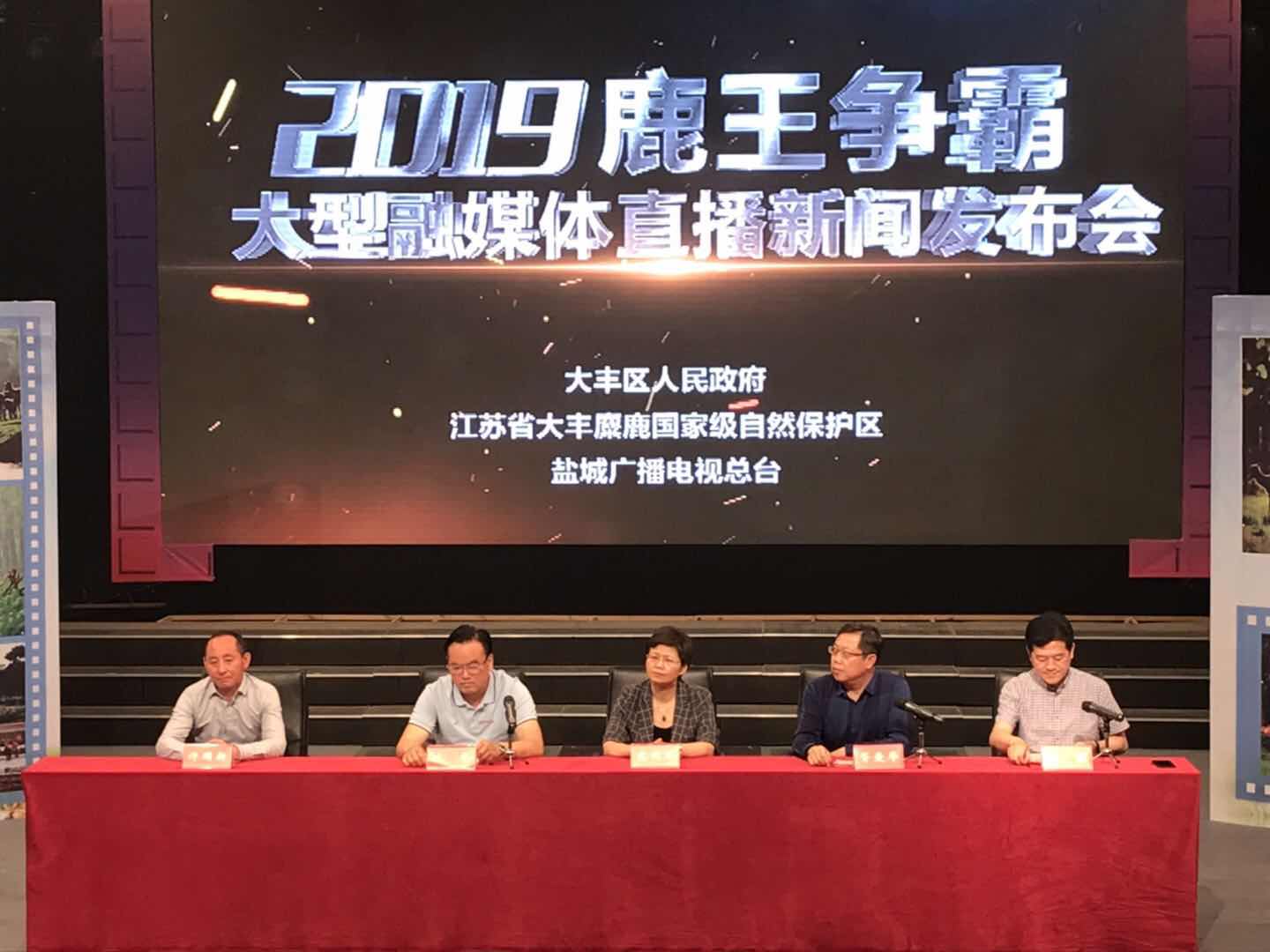 6月1日下午,2019鹿王争霸大型融媒体直播新闻发布会在盐城广播电视总台举行。江苏省大丰麋鹿国家级自然保护区、盐城广播电视总台等相关单位负责人出席了本次发布会,并向新闻媒体介绍了本次鹿王争霸融媒体直播的整体筹备情况和活动安排。