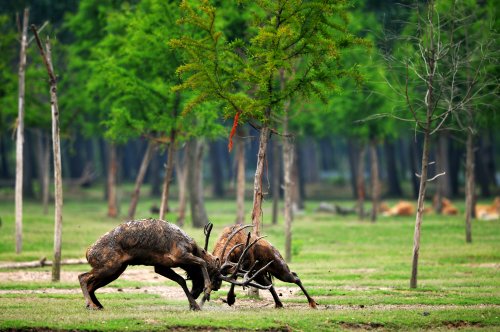 每年6月,雄性麋鹿遵循大自然优胜劣汰的规律,通过争斗决出鹿王,获得独一无二的交配权。大丰麋鹿保护区野生麋鹿也已经成功繁育出子六代,结束了全球百年以来无完全野生麋鹿群的历史。从濒临灭绝到种群再盛,再到回归野外生存,麋鹿家族的日益兴盛是我国生态文明建设的典范,为人类拯救濒危物种提供了成功范例,标志着我国野生动物保护事业乃至世界濒危物种保护事业进入一个新的领域。