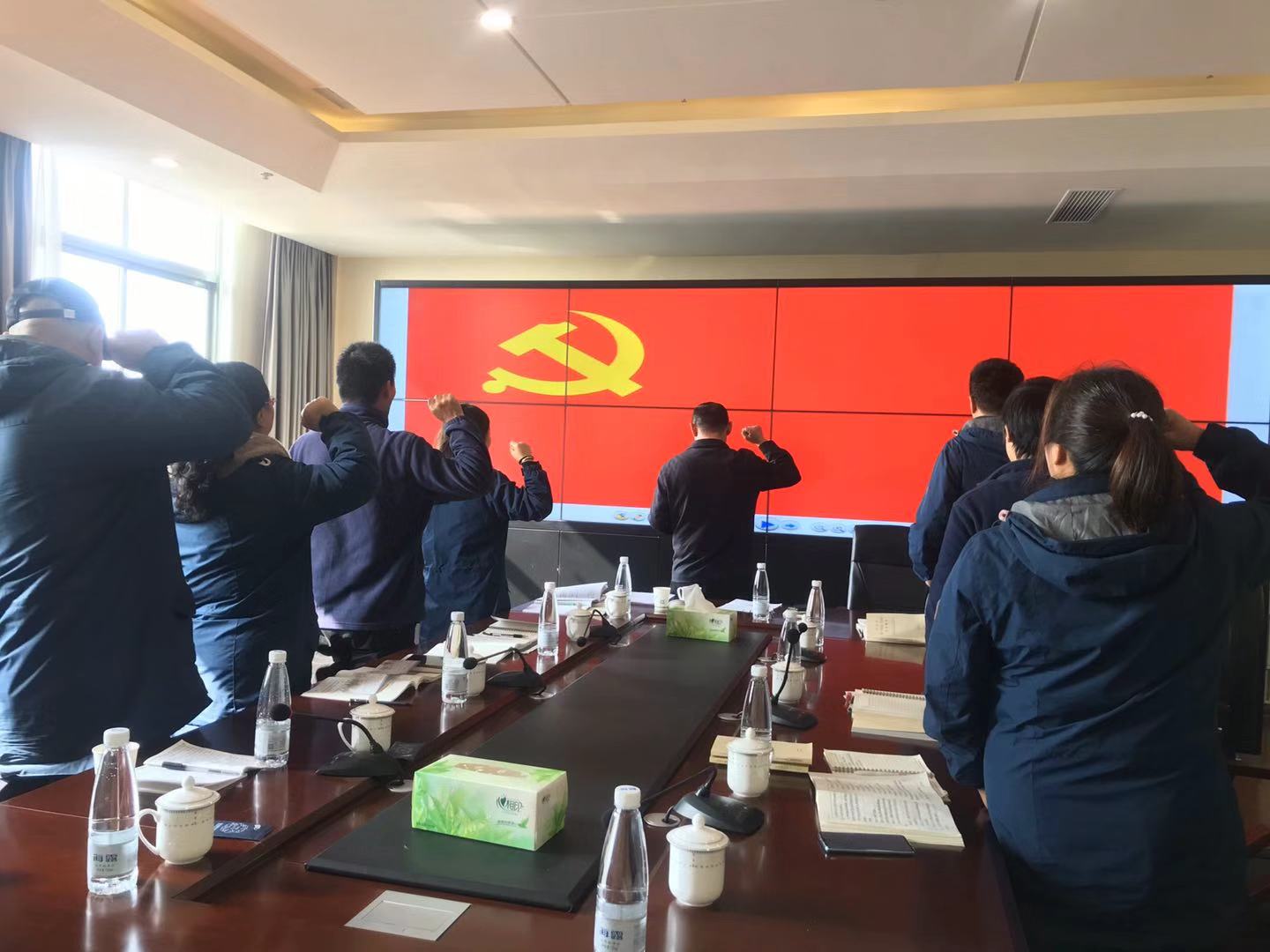 唱完国歌,全体党员面对党旗,在许书记带领下举起右手庄严宣誓:“我志愿加入中国共产党,拥护党的纲领,遵守党的章程……”。入党时激情澎湃的誓词回荡的耳边,提醒党员干始终坚定理想信念、牢记党的宗旨,不忘初心、砥砺前行。