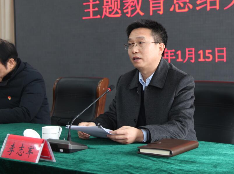 保护区党组书记李志军代表麋鹿保护区党组作主题教育总结报告。报告中李志军指出保护区党组要提高政治站位,强化责任担当,严格对标回头看,紧扣要求再出发,更加密切联系服务群众,更加有效凝聚党心民心;要围绕“理论学习有收获、思想政治受洗礼、干事创业敢担当、为民服务解难题、清正廉洁作表率”总目标,全面回顾总结,凝练做法成效;要坚持常抓不懈,永葆奋斗激情,做到勤学善思、知行合一,创新路径、绿色发展,担当作为、锐意进取,建章立制、全面从严。