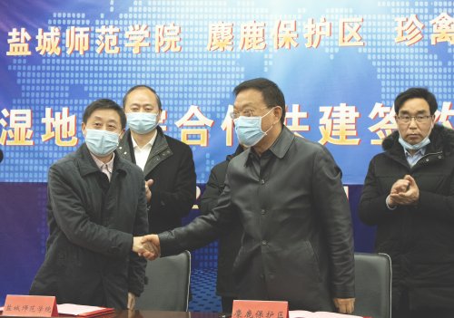 2020年3月11日,江苏省大丰麋鹿国家级自然保护区管理处与盐城师范学院签订“盐城师范学院湿地学院合作共建协议”。