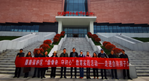 2021年4月21日,麋鹿保护区党组组织保护区全体党员赴白驹狮子口党性教育基地,开展党史学习教育现场教学活动,缅怀革命前辈,接受党史教育。