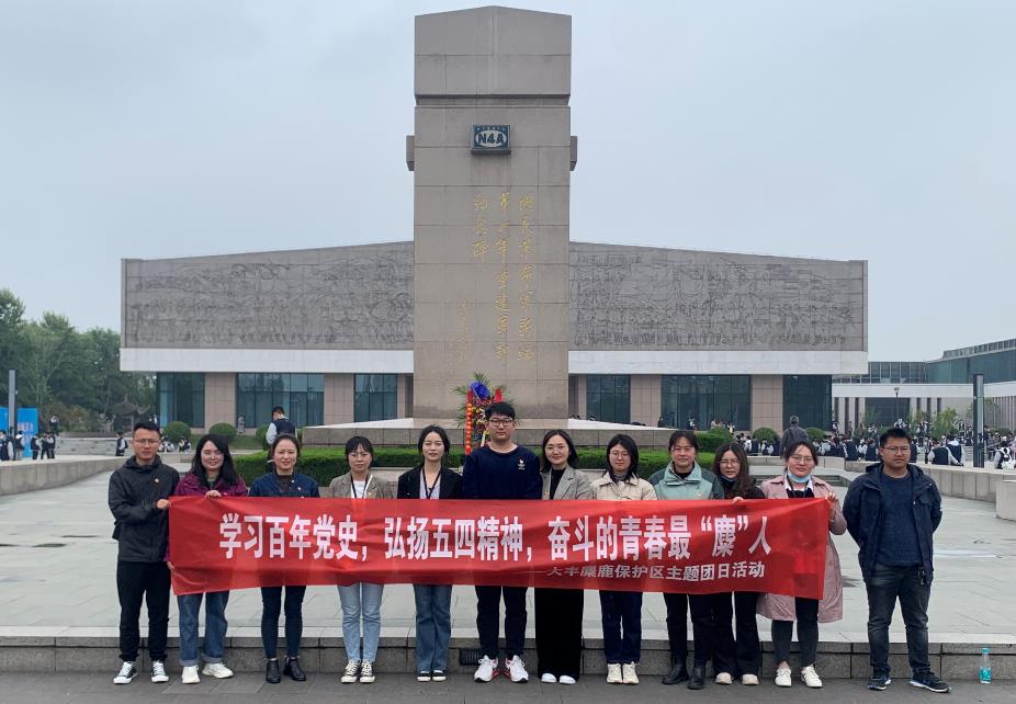 为传承红色基因,汲取奋进力量,进一步将保护区“学党史、强信念、跟党走”学习教育活动走深走实, 4月27日,大丰麋鹿保护区团委组织全体团员青年到盐城新四军纪念馆和中国海盐博物馆开展“学习百年历史,弘扬五四精神,奋斗的青春最‘麋’人”主题团日活动。