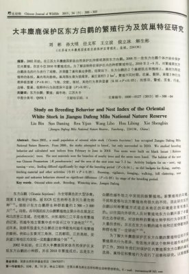 大丰麋鹿保护区东方白鹳的繁殖行为及筑巢特征研究